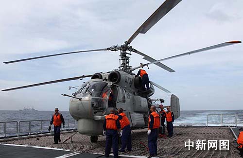 圖為“?凇碧枌(dǎo)彈驅(qū)逐艦艦載直升機(jī)進(jìn)行飛行訓(xùn)練準(zhǔn)備。中新社記者 孫自法 攝