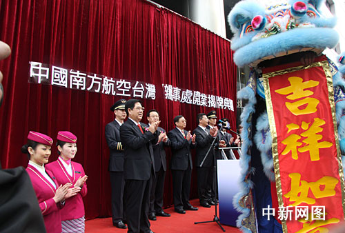 1月15日,大陸南方航空公司在臺(tái)北正式成立辦事處,成為首家在臺(tái)灣掛牌運(yùn)營(yíng)的大陸企業(yè)。圖為開(kāi)業(yè)揭幕儀式典禮。中新社記者 陳立宇 攝