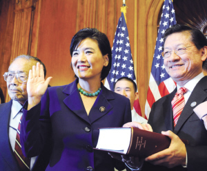 在洛杉磯地區(qū)政壇活躍了24年的趙美心(Judy Chu)2009年7月14日晚,在加州聯(lián)邦第32選區(qū)的特別選舉中勝出,當(dāng)選美國首位華裔女國會議員,締造了歷史。在國會參眾兩院五百多位議員中,趙美心是繼吳振偉之后的第二位華裔國會議員,也是美國建國兩百多年來首位華裔女聯(lián)邦議員。