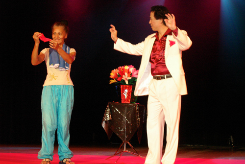 演出從活潑、歡快的空竹表演開(kāi)始。藝術(shù)小組小演員們嫻熟地抖動(dòng)、拋起空竹的動(dòng)作,使現(xiàn)場(chǎng)不時(shí)爆發(fā)出熱烈的掌聲和歡呼聲。魔術(shù)演員敏捷的變幻手法則讓學(xué)生們睜大了好奇的眼睛。接下來(lái)的鉆桶、轉(zhuǎn)盤(pán)子節(jié)目,小演員們以風(fēng)趣幽默的表演和頂上、手上技巧表現(xiàn)出熱鬧的生活場(chǎng)景,引來(lái)學(xué)生們陣陣歡笑。柔術(shù)則以柔美的肢體語(yǔ)言和行云流水般的輕盈舞姿,獲得觀眾不停的贊嘆聲。壓軸的川劇變臉、吐火表演又讓觀眾領(lǐng)略了中國(guó)傳統(tǒng)戲曲藝術(shù)的獨(dú)特魅力。
