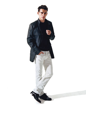 五:夜間的白色仔褲?肯定!讓白色仔褲也能適合夜間穿著?那么,剩下的部分你要絕對小心才行。不但要簡潔大方,更要充實自然。一件黑色的輕薄高領(lǐng)開司米運動衫,和一件合身的小夾克,都是不錯的選擇。跳過運動鞋,選擇黑色的復(fù)古皮鞋吧,那才是最合適你的裝備。