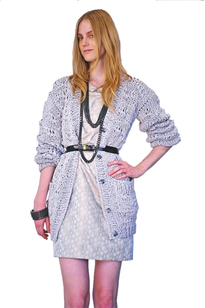 此外,將棒針針織與雪紡或起毛皮革等不同面料進行搭配,可讓針織衫呈現(xiàn)全新的表情。由于棒針毛衣帶給人本身已經(jīng)很狂野了,所以在色彩的選擇上以黑色、茶色和紅色為主,雖說流行,但也有人一穿這種灰暗的顏色就顯得老土,怎么辦呢?這就要靠值得玩味的細節(jié)了。比如抽帶、細皮條和大紐扣……(舒志娟)