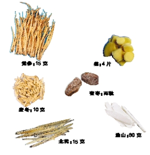黨參是常用的補氣中藥,具補中益氣、和胃養(yǎng)血等功效,最宜用于平素倦怠乏力,精神不振,自覺氣短,稍一活動就喘促的氣虛患者,由于補氣也有助于生血,所以黨參也適用于氣血兩虛面色蒼白,頭昏眼花,胃口不好,大便稀軟,容易感冒的病人。黨參含有多糖、葡萄糖、果糖、菊糖、蔗糖、磷酸鹽和17種氨基酸,其中包括賴氨酸等7種人體不能合成的必需氨基酸,此外還含皂甙、揮發(fā)油、脂肪和鉀、鈉、鎂、鋅、銅、鐵等14種元素,這些都是黨參作為補益藥的物質(zhì)基礎(chǔ)。