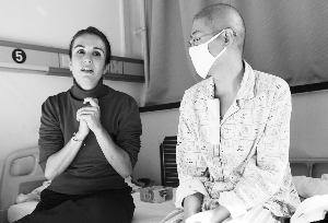 “他是我第一個(gè)中國(guó)朋友!弊蛉障挛纾307醫(yī)院的骨髓病房,吳麗雅和劉江濤坐在病床邊,說(shuō)起他們相識(shí)的經(jīng)歷。