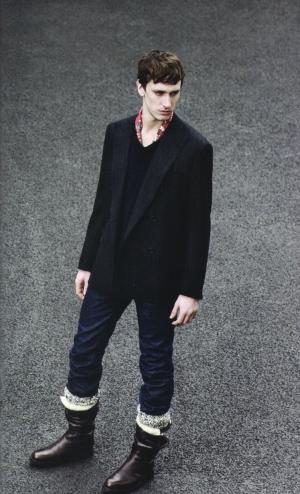 休閑西裝配隨性牛仔褲,頸間隱約露出一小段彩色方巾,這樣的男人已經(jīng)會(huì)令女人多看他一眼;如果他腳上蹬著的那雙中幫皮靴里不經(jīng)意地露出一截彩色毛線褲襪,那一定會(huì)引來探究的目光。這是今年秋冬大牌男裝設(shè)計(jì)師推出的最酷的“童趣”裝扮,讓男人借著孩提時(shí)代一雙彩色毛線褲襪回味童年時(shí)光,也算是一種心靈瑜珈吧。