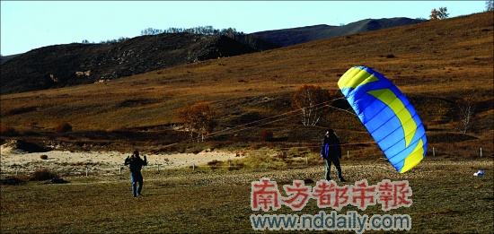 在草原上放風(fēng)箏實在是一件超爽的事。風(fēng)很大,稍稍跑一跑,風(fēng)箏就直飛上天了。但要注意的是重心必須比平時下沉,因為風(fēng)實在太大了,有把人吹走的嫌疑。同行有位肥佬一開始掌握不了要領(lǐng),一下了摔倒在地上,呈現(xiàn)一個大大的“S”形,被大家取笑為“芙蓉姐姐”。