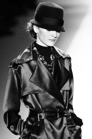 中性風格的簡約版淺口禮帽是今冬最熱門之選,很“百搭”,幾乎可以搭配不同風格的時裝。和呢子大衣、小西服等線條硬朗的服裝在一起,帥氣颯爽;和女性風格濃郁的雪紡裙、短裙等搭配,刻意拉大的反差也很吸引眼球,最好配上可愛感十足的彩襪,更是有另一番的風情。 (巫倩姿)