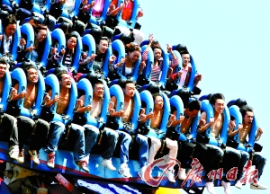 11時11分11秒,其余10位“脫光”失敗的勇士慘了,他們一同坐到了過山車的第一排,而且都光著膀子!隨著呼嘯的風(fēng)聲,10名未能“脫光”的勇士們被“明明”們?nèi)拥搅撕L(fēng)中……