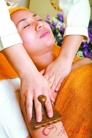 現(xiàn)在,美容院還推出巧克力熱石按摩,其巧克力石實際是罕見稀有的帶有巧克力香味的金香玉天然玉石。配合高等級的身體能量按摩油,將兩者的作用巧妙地合二為一,能迅速滋潤干裂的肌膚,滲透至肌膚內(nèi)層,清除毛囊內(nèi)每天積聚的污垢,同時排導(dǎo)出全身酸毒。