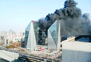“轟”的一聲,一股黑色濃煙從樓頂騰空而起,“像大樓爆破一樣!币幻繐舻某鲎廛囁緳C(jī)介紹說,當(dāng)時(shí)他正開車經(jīng)過樂成國(guó)際購(gòu)物中心,隨著一聲炸響,購(gòu)物中心三樓頂層的設(shè)備間起火,四周的隔板都隨著顫動(dòng),火苗也從擋板縫隙往外躥,“我開車到了廣渠門內(nèi),還能看見濃煙!