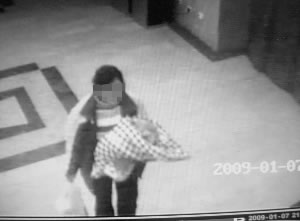 監(jiān)控錄像顯示:一名30歲左右的女子身穿白黑紅三色棉襖或羽絨服,內(nèi)穿兩色條紋毛衣,身高在1米60左右。晚上9點(diǎn)36分40秒,這名女子從西樓的東門進(jìn)入大樓,當(dāng)時(shí)手中抱著女嬰,用一條花格包被包著,同時(shí)右手還提著塑料袋。