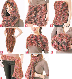 據(jù)英國(guó)媒體15日?qǐng)?bào)道,席卷全球的金融危機(jī)讓很多愛(ài)好時(shí)裝的女性被迫減少了逛時(shí)裝商場(chǎng)的次數(shù),不過(guò),美國(guó)馬薩諸塞州的“魔法圍巾公司”卻為消費(fèi)者設(shè)計(jì)出了一條足以應(yīng)付金融危機(jī)的“魔法圍巾”,這條圍巾竟能變成9種不同的服裝道具:它既可以變成頭巾、圍巾、披肩和腰帶穿戴,同時(shí)也能充當(dāng)抹胸背心、無(wú)袖女裝和迷你裙。