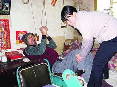 索海存老人說(shuō):“自從菊會(huì)嫁入我家,吃喝拉撒全靠她。每隔幾十分鐘我就會(huì)不由自主地抽風(fēng),菊會(huì)就不停地給我拉腿、壓胳膊。躺在床上時(shí)間一長(zhǎng)不舒服,菊會(huì)還要不時(shí)地扶我坐一會(huì)……”