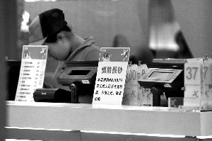 一個月來,西單大悅城一些商戶拒收HD、HB開頭的百元鈔票,有商鋪還在收銀臺擺放拒收告示,引起市民不滿。昨日,大悅城管理部門表示,如遇市民投訴,將要求商戶整改,接收相關(guān)編號的真鈔。
