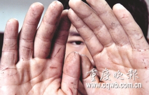 昨日,記者細(xì)數(shù)小志雙手傷口,多達(dá)26道,遍及手掌、手背和手指,最長(zhǎng)的有四五厘米。