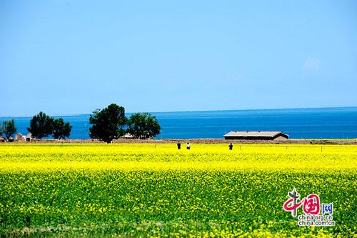 站在日月亭兩山間的路上,便可眺見青海湖,湛藍(lán)的粼粼波光和湖岸邊,一望無際綿綿起伏不盡的草場。轉(zhuǎn)瞬之間來到青海湖,這里,水映天色,微風(fēng)清揚(yáng),湖水碧藍(lán),黃鴨、鸕鶿群群。各色水鳥,拍翅翻飛,戲水鳴唱。