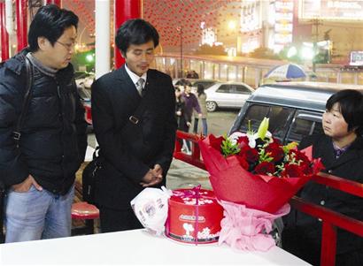 昨日(2月22日)離“情人節(jié)”過去已有8天,而在武昌徐東某商場前,一名小伙子帶著鮮花和生日蛋糕,也足足等了8天。他等著女友前來,可結(jié)果“令人失望”。
