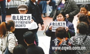 昨上午,三峽廣場新世紀(jì)門口,一對頭發(fā)花白的老人手舉“為救兒,跪求一份工作”的牌子,引來不少市民圍觀。夫婦倆男的叫余柏容,67歲,豐都縣崇興鄉(xiāng)春花村4組人,妻子湛正芳,65歲。余柏容說,兒子余雷今年27歲,之前在井口民豐化工廠當(dāng)工人,老兩口和兒子、兒媳、孫兒一起擠住在井口先鋒街租賃房。去年,該廠搬遷到潼南,余雷夫妻隨工廠去了潼南。