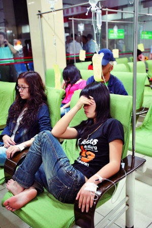 據(jù)了解,中毒的14人為老鄉(xiāng)關(guān)系,均來(lái)自福建閩中,部分人已在廣州工作多年,其中有不少穿著打扮時(shí)髦的靚女。事發(fā)時(shí)為下午16時(shí)許,當(dāng)時(shí)大家一起在粵墾路一位名叫耿宗文的人家中聚餐。正在打點(diǎn)滴的耿宗文對(duì)記者說(shuō):“我們聚餐共有14人,主要是慶祝金融危機(jī)下新來(lái)的老鄉(xiāng)找到工作。當(dāng)時(shí)大家為了節(jié)約成本,就由我的一名親戚去附近一家農(nóng)貿(mào)市場(chǎng)買菜,然后來(lái)我家做飯,本來(lái)吃得很高興,沒(méi)想到吃完不到10分鐘,就全部開(kāi)始出現(xiàn)腹瀉、頭暈癥狀,隨后大家集體搶廁所,我們隨后打電話給110求救。”據(jù)了解,當(dāng)時(shí)吃完飯大概在17時(shí)許,吃的飯菜有酸菜魚、豆腐、豬肝、芹菜、西紅柿蛋湯、咸魚、蝦干、米飯!斑@些菜吃的時(shí)候沒(méi)有任何異味,不知道是哪道菜出了問(wèn)題。”旁邊正在嘔吐的鄧先英對(duì)記者說(shuō)。