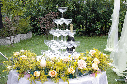 觀禮場旁邊,例牌要準(zhǔn)備一些簡單的餐點供親友們享用。至于浪漫的泡泡機、現(xiàn)場演奏的小樂隊,就可以視乎新人們的需要來添加或者忽略。