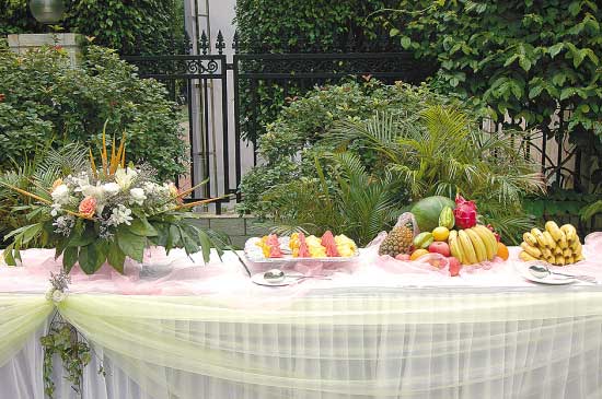 草坪婚禮通常要選擇一片綠地或花園,時間會在午后和晚宴之前。在寸金尺土的廣州城內(nèi),可以舉辦草坪婚禮的地方并不多,只有白天鵝賓館、幾家星級酒店和地處二沙島、五羊新城或者珠江新城等擁有綠地較多的西餐廳可以進行。而且,所選的地點要靠近晚上婚宴之所,免除新人奔波之苦。帶花園或綠地的西餐廳或者酒店,都是新人們的首選。