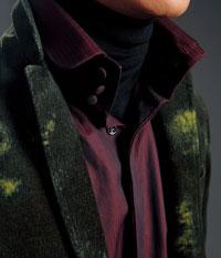 無論穿什么外套都要穿襯衫, 這可是Chuck 的另一標(biāo)志,搭配上針織高領(lǐng)圍脖就會更加時髦,如果選穿印花外套,那么褲裝以微喇的長褲最為適合。