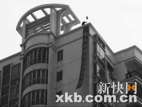 掛出紅色求愛條幅,坐在護欄邊……昨日上午9時30分,一名年輕男子爬上荔灣區(qū)逢源路某小區(qū)30樓樓頂,用一種危險的方式向一名女子示愛,一個小時后被警方勸下。