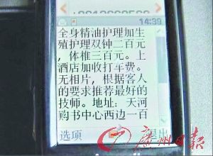 如果到會所里消費的話,除普通按摩收費外,如果有進一步需求,還需要另外加錢。小全上門“服務(wù)”一次收費數(shù)百元,這其中老板要提成一半左右,生意好的時候“技師”一個月可以有上萬元收入,不好的時候也有溫飽。談了十幾分鐘后,小全見我們沒有動靜就有點急了,記者這時找了一個借口,說有急事要借顧離開。