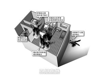 跳樓時(shí),劉某身上穿了一件棉毛衫和一條春秋褲,明顯是經(jīng)過(guò)了一夜的思考才做的決定!八丶业臅r(shí)候還吃了燒烤的?蛷d左邊的那間臥室還被火燒了,孩子死在衛(wèi)生間里面,穿的粉紅皮鞋,身體在便池里面!睋(jù)這位知情人士透露,現(xiàn)場(chǎng)還有兩間臥室沒(méi)有被火燒,分別放著羅某和其父親的尸首。羅某全身赤裸,趴在床頭邊,紅色內(nèi)褲被脫至大腿兩側(cè),而羅某的父親在另外一間臥室平躺,頭朝門外,身上多處刀傷,滿地鮮血……至于劉某自殺前為何要將另外一間臥室點(diǎn)燃不得而知,遺書中沒(méi)有交代。(記者高洋攝影華小峰)