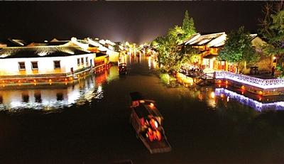 烏鎮(zhèn)西柵夜景。