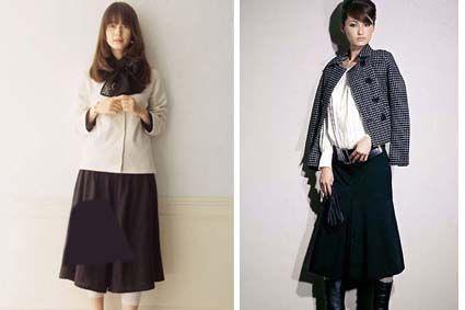 暗色圓領(lǐng)的外套加非褶裙可添加優(yōu)雅感,此裝扮,會顯得身材纖細(xì),白色襯衫是重點(diǎn)的點(diǎn)綴,給人清爽的印象,整體看起來也會不失優(yōu)雅。