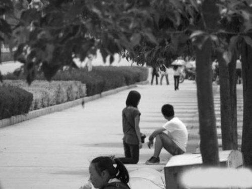 昨日,記者在貓撲大雜燴上看到了網(wǎng)友“castmylife”首發(fā)的帖子,帖子的點(diǎn)擊率已經(jīng)突破3萬。發(fā)帖者在帖子上展示了3張圖片:在一鬧市街道上,一個男生坐在花壇旁,而一名低著頭的灰衣服長發(fā)女生正跪在他的面前,似乎正在央求著什么,男生一語不發(fā),并把頭轉(zhuǎn)向一邊。在最后一張圖片里,男生干脆起身快步離開,那名女生則仍跪在地上,望著男生離去的背影一語不發(fā)。