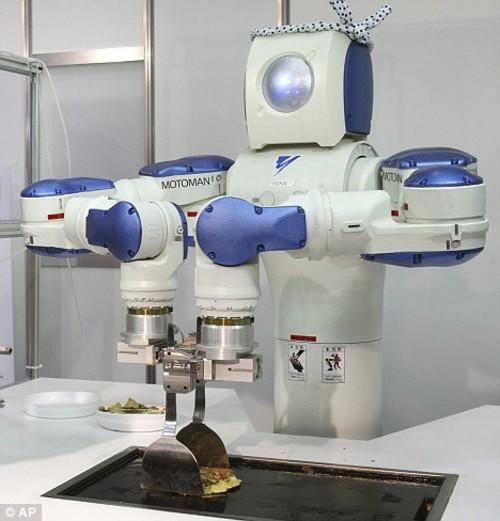 日前,在日本東京舉行的“國際食品機(jī)械和技術(shù)展覽會”上,一款“煎餅”機(jī)器人正在進(jìn)行表演,它能夠制作四種日本傳統(tǒng)的面餅。這臺機(jī)器人名叫"摩托曼(Motoman)",由日本安川電機(jī)公司研發(fā),型號為SDA10。