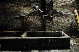 一間地下作坊里,褪了毛的鴨鵝隨意塞在一個(gè)桶里