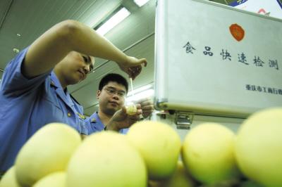 經(jīng)開區(qū)某超市,工商工作人員用食品快速檢測箱檢測食品安全 記者 歐陽祖兵 攝