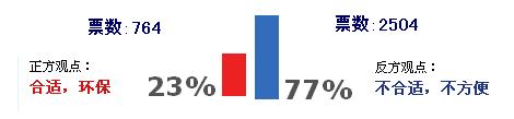 近日,人民網(wǎng)推出了辯論調(diào)查《長(zhǎng)沙賓館不再提供免費(fèi)一次性日用品,合適嗎》。截至辯論結(jié)束時(shí),共有3268名網(wǎng)友參與了投票。其中,2504名網(wǎng)友提出反對(duì),占總?cè)藬?shù)的77%,理由主要為“不合適,不方便”,只有764名網(wǎng)友表示支持,認(rèn)為此舉有利于“環(huán)!。