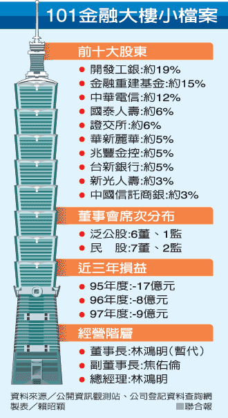 臺北101股東結(jié)構(gòu)中,泛中信集團(tuán)包括開發(fā)金、中國信托銀行與中國人壽等三家公司,合計(jì)持有約二成五股權(quán),中壽與中信銀是否跟進(jìn)釋股有待觀察。