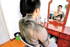 炎熱的夏天,23歲的小宋還穿著長袖衣服,熱得滿頭大汗!安皇俏也慌聼,我是怕別人看到我身上的黑色‘毛坎肩’,又對我指指點點。”小宋口中的毛坎肩,其實是已經(jīng)伴隨了他20多年的黑毛胎記。