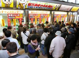 報(bào)道稱,日本時(shí)間24日早上8點(diǎn),人們懷著“億萬富翁”的夢想在Jumbo銷售點(diǎn)排起了長隊(duì),僅在東京銀座的一處賣場,8點(diǎn)半的時(shí)候就已經(jīng)有1050人在排隊(duì)。日本大阪、名古屋、福岡等地情況相同。