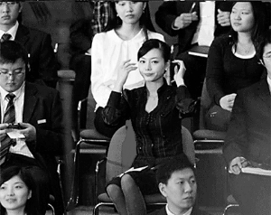 11月16日13時,對中國進行國事訪問的美國總統(tǒng)奧巴馬走進上?萍拣^會場,與中國青年展開對話。但是和奧巴馬的演講相比,現(xiàn)場攝影記者對一名黑衣女子表現(xiàn)出了更大的興趣。這名美女在現(xiàn)場脫掉紅色外套露出黑色套裝的全過程被記者用相機記錄下來,被制作成GIF動畫上傳網(wǎng)絡(luò),隨后這組動畫在網(wǎng)上論壇以及QQ群里廣泛傳播,隨后又有網(wǎng)友將奧巴馬演講視頻中有關(guān)該女子的片段截圖上傳,黑衣美女的美貌和氣質(zhì)迅速傾倒眾人。