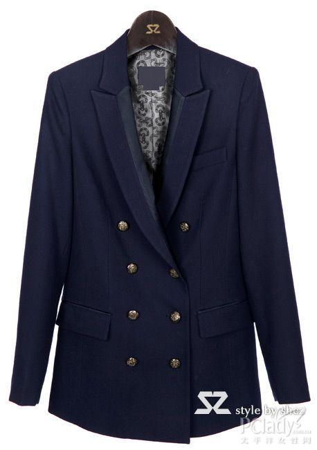 我們經(jīng)?梢詮恼y(tǒng)的制服中窺見雙排扣的影蹤,如軍裝、校服等。拋棄了黑色西裝的呆板沉悶,深藍(lán)色調(diào)卻為你帶來一種冷靜沉著的情緒,也在視覺上有收縮的的效果,讓你身材更顯瘦。金色的雙排紐扣就如點(diǎn)睛一般地與深藍(lán)色面料對(duì)比得十分好看,這款充滿制服正式感的西裝絕對(duì)是為知性O(shè)L而存在的,硬挺的面料和剪裁別致的領(lǐng)型,為你帶來十足的干練感!