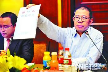 農(nóng)夫山泉董事長(zhǎng)鐘睒睒昨表示對(duì)復(fù)檢“不予認(rèn)同”。圖為11月30日鐘睒睒展示有關(guān)部門的檢驗(yàn)報(bào)告-供圖/新華