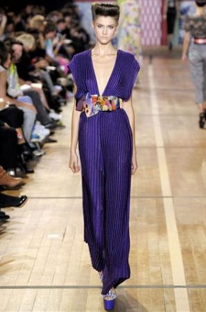 和式設(shè)計(jì)本季尚未退出潮流舞臺,Basso &Brooke用深V領(lǐng)的衣襟和印著馥郁花朵的寬闊折紙感腰帶,將和風(fēng)融入希臘女神裙的設(shè)計(jì),顯得性感而比例姣好。而豎直褶裥面料,讓人想起三宅一生最著名的設(shè)計(jì),這樣的紋路的優(yōu)點(diǎn),就是讓人更加纖長,曲線畢露。