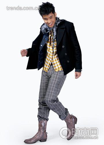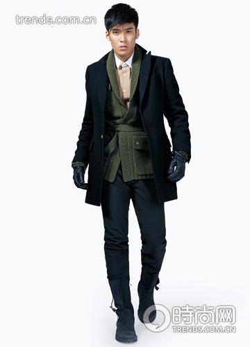 青果領(lǐng)粗線毛衣系上腰帶比普通開(kāi)衫套在大衣里更能搭出俊朗的效果。