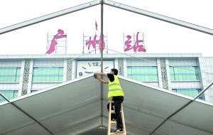 昨日廣州火車站仍在緊急搭建雨棚。新華社圖