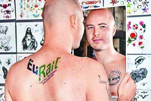 信息時報綜合報道 據(jù)英國媒體3日報道,澳大利亞一名失業(yè)漢知道雙親渴望到歐洲旅行后,為讓他們今年有個難忘的結(jié)婚周年紀(jì)念,毅然向歐洲鐵路公司提出建議,他把該公司的標(biāo)志賣廣告文在身上,換取兩張免費(fèi)歐洲游車票,沒想到最后竟得償所愿。
