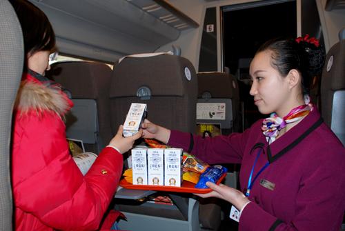 春節(jié)期間和諧號(hào)上蒙牛牛奶受到廣大乘客的歡迎