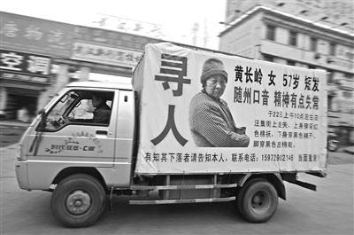 過(guò)年時(shí),五旬母親走親戚時(shí)在新洲街頭走失,為了尋人,孝子雇傭一輛貨柜車,在車廂上掛起大幅海報(bào),呼喚母親盡快回家。昨日上午,在東西湖吳家山三秀路,這輛小型貨柜車十分醒目(見圖)。