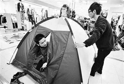 眼下不少市民外出踏青旅游,武漢各大商場(chǎng)的戶外用品銷售漸入旺季。21日,在漢口一商場(chǎng)里,營業(yè)員正忙著給顧客展示戶外帳篷。據(jù)了解,由于選購戶外用品的消費(fèi)者大多是有車一族,商家在推薦時(shí)會(huì)側(cè)重于使用方便、環(huán)保型的產(chǎn)品。記者詹松攝影報(bào)道