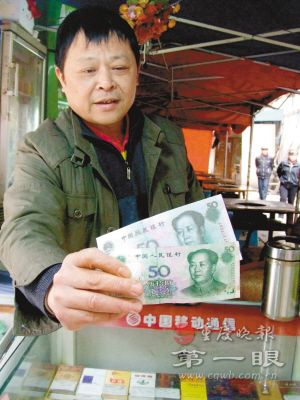 現(xiàn)在有假鈔替代真鈔的,但你見(jiàn)過(guò)用冥幣來(lái)冒充人民幣的嗎?昨日,渝中區(qū)響水橋6號(hào)煙攤老板王國(guó)華就遇到了這件事,“經(jīng)常收錢(qián),一摸就認(rèn)出來(lái)了,但冥幣做成人民幣的樣子,面值小的,不注意還真容易弄混!蓖鯂(guó)華說(shuō)。